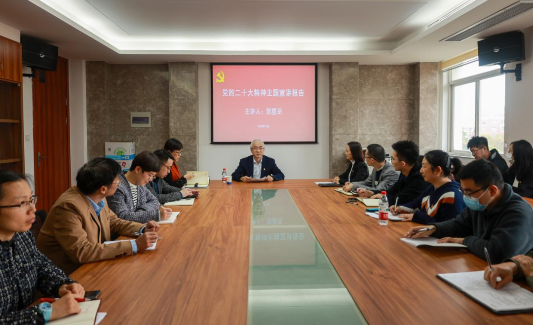 校长贺星岳在国际教育学院宣讲。贺星岳在国际教育学院与教师面对面交流,深入宣讲党的二十大精神。他指出,要深刻认识学习宣传贯彻党的二十大精神的重大意义。党的二十大是在全党全国各族人民迈上全面建设社会主义现代化国家新征程、向第二个百年奋斗目标进军的关键时刻召开的一次十分重要的大会。大会对凝聚和激励全党全军各族人民高举中国特色社会主义伟大旗帜、全面建设社会主义现代化国家、全面推进中华民族伟大复兴具有十分重大的政治意义、理论意义、战略意义、实践意义。