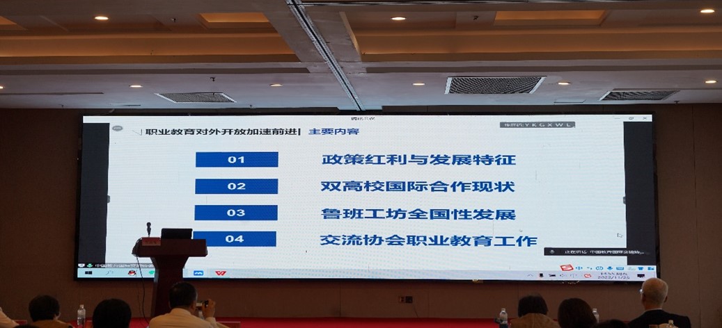 舒培冬在致辞中总结了浙江省高职院校在国际合作交流方面取得的成绩,充分肯定了高职分会在搭建平台方面起到的重要作用。他指出,高职分会成立以来,资源共享、优势互补、“抱团”行动,整体推进国际合作与交流,在提升我省职业教育国际影响力方面起到积极的作用,分会年会也成为全省高职院校交流经验、分享成果的重要舞台。由于疫情、国际关系等多重原因,职业教育国际化步伐有所放缓,大家在工作中也遇到了各种困难和挑战,他希望大家保持定力、深入探讨、凝聚共识、寻求方案,促进我省高职院校更好地服务“一带一路”倡议,努力开创我省职业教育国际化发展新格局。