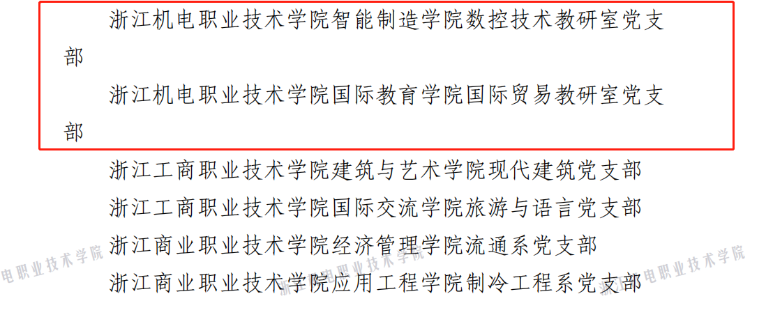 近日,中共浙江省委教育工作委员会公布了第三批全省高校党建“双创”培育创建单位名单,学校推荐选送的4个项目全部入选。其中,现代信息技术学院党总支、创意设计学院党总支立项第三批全省高校标杆院系培育创建单位,智能制造学院数控技术教研室党支部、国际教育学院国际贸易教研室党支部立项第三批全省高校样板支部培育创建单位。