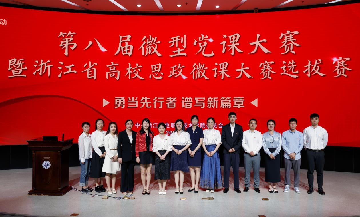为深入贯彻习近平总书记考察浙江重要讲话精神、习近平总书记在同团中央新一届领导班子集体谈话时的重要讲话精神以及省委“新春第一会”精神,深化巩固拓展学习贯彻习近平新时代中国特色社会主义思想主题教育成果,扎实开展党纪学习教育,5月8日,学校在滨江校区成功举办以“勇当先行者 谱写新篇章”为主题的第八届微型党课大赛暨浙江省高校思政微课大赛选拔赛,比赛分教工组和学生组两个组别进行。学校党委副书记、工会主席周增逵出席活动并讲话,相关党委职能部门负责人,各党总支(直属党支部)书记,以及各二级学院学工办主任担任比赛评委,各二级党组织师生代表现场观摩比赛。