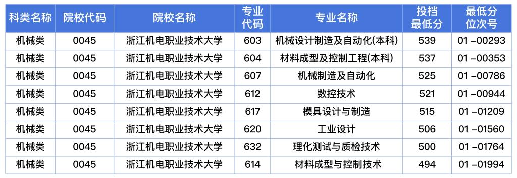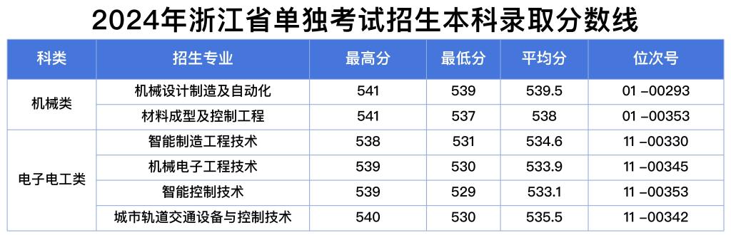 在日前浙江省教育考试院公布的《浙江省2024年单独考试招生平行投档分数线》中显示,全省本科的机械类招生中,我校的机械设计制造及自动化和材料成型及控制工程等专业的最低投档分位居职教本科第一;在全省专科的机械类招生中,我校的机械制造及自动化、数控技术、模具设计与制造、理化测试与质检技术、材料成型及控制技术、工业设计等专业的最低投档分位居全省该专业第一名!