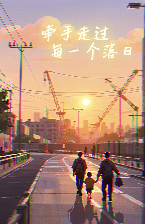 “牵手走过每一个落日,爱在家人掌心间延续。”——一家人在落日余晖中牵手漫步,彰显出家庭的温馨与亲情的重要性。每一个落日都象征着一天的结束,也是家人间相互陪伴与关爱的见证。——网络2302 徐茹雯