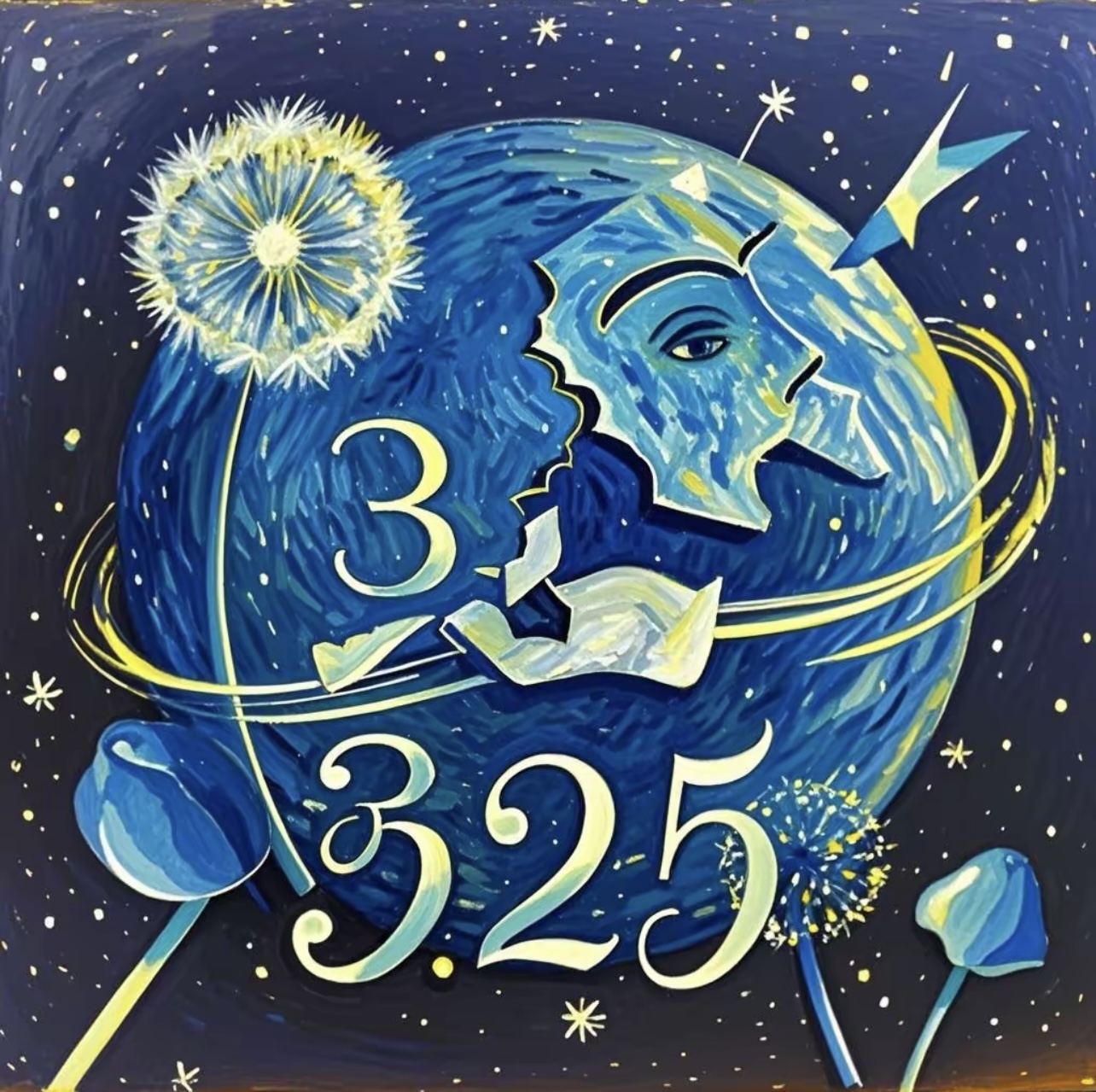 以“3.25善爱我”为主题,用蒲公英象征烦恼消散,破碎面具修复体现心理疗愈。从关爱自我中获取灵感,借助Midjourney,以梵高风格油画展现,隐喻独特心理成长路。——计算2461 赵权