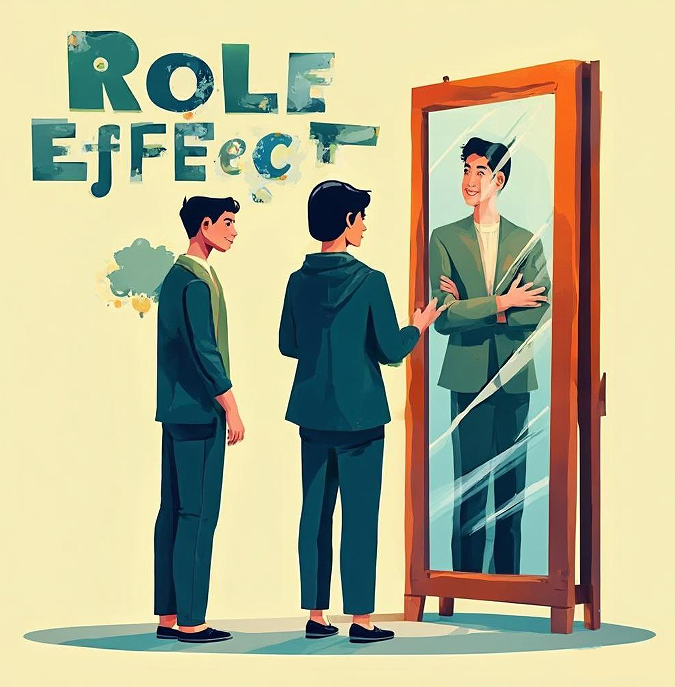 本海报通过镜子反射的创意,展示了“角色效应”对个人成长的影响。画面中,人物在镜子前站立,镜中映出更自信、成功的自己,寓意着自我认知和信念对个人潜力的塑造。设计风格现代,注重现实与潜能的对比,色彩鲜明,强调心态转变的力量。——大数据2301 周贤奇