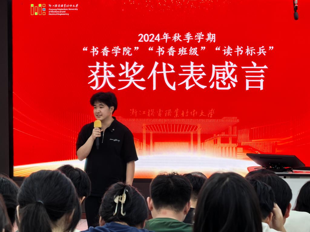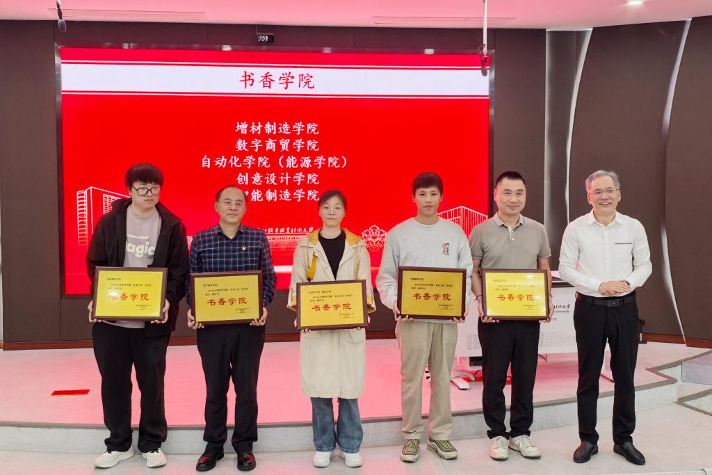 随后举行的2024年秋季学期“书香学院”“书香班级”“读书标兵”颁奖典礼上,增材制造学院、数字商贸学院、自动化学院(能源学院)、创意设计学院、智能制造学院等5个学院获评“书香学院”,物联2461班、工设2461班等10个班级荣获“书香班级”,柳浩、施炫余等20名同学被授予“读书标兵”称号。