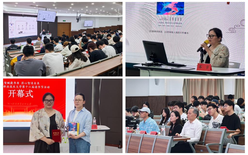 作为开幕式的亮点环节,第六期“桑梓河边读书会”特邀河南省作家协会会员、青年作家苏辛带来《岁月山川,是我送给你的情书——聊聊绝美宋词中的五种深情》主题讲座。苏辛老师以苏轼、黄庭坚等宋代词人的经典作品为脉络,带领师生穿越千年时光,感悟词句中的深情与风骨。讲座结束后,苏辛向学校图书馆捐赠其最新著作,为机电学子文学修养的提高提供了宝贵的资源。