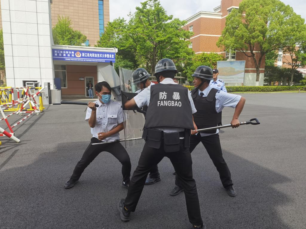 为进一步提升校园安全防范能力,增强师生反恐防暴意识,检验校门防冲撞应急处置水平,浙江机电职业技术大学滨江校区于4月26日上午在南大门组织开展反恐防暴暨校门防冲撞应急演练。辖区派出所民警周警官现场进行指导。