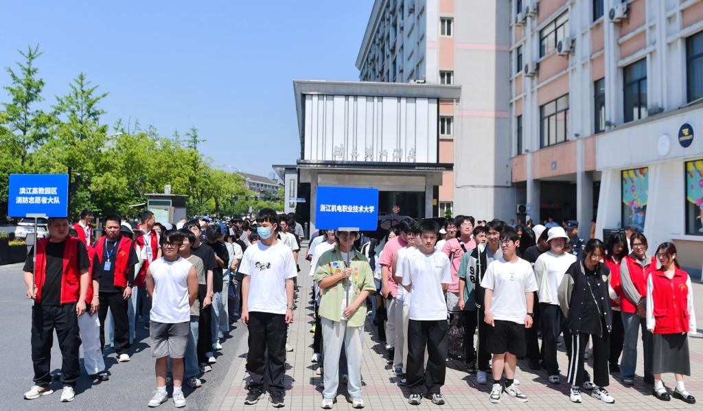 2025年5月14日,浙江机电职业技术大学携手浙江省教育发展中心、滨江后勤集团,在滨江高教园立德园启动“人人讲安全、个个会应急——排查身边灾害隐患”防灾减灾系列活动。学校党委副书记陈剑波、浙江省教育发展中心后勤部副主任陶仕青、滨文社区党总支书记杨磊、安保部副部长徐振前、学工部副部长周巧军出席,浦沿派出所民警、周边院校代表、园区消防志愿者、应急培训人员及数百名学生参与。