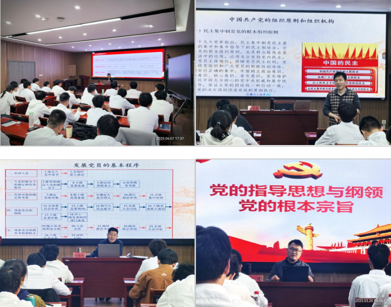 在理论教学环节,学院邀请了多位资深专家和优秀教师为学员们授课。朱玉堂老师以“党的组织制度和党纪学习教育专题”为切入点,深入剖析党的组织架构和纪律要求,为学员们筑牢了纪律防线;孟进老师围绕“党的性质、党的根本宗旨和党的指导思想”,带领学员们重温党的光辉历程,感悟党的初心使命;沈国林老师详细解读“党员的权利、义务和入党的基本条件”,让学员们对党员身份有了更清晰的认识;陈罡老师聚焦“深入贯彻中央八项规定精神学习教育”,引导学员们从理论学习、实践应用和责任担当三个维度深化对中央八项规定精神的理解,培养学员们廉洁自律、艰苦奋斗的优良作风,将思政教育的道德规范与行为准则内化于心、外化于行;罗鹏举老师开展“深化党纪学习教育成果,筑牢意识形态安全防线”专题党课,深入浅出地阐述了深化党纪学习教育成果与筑牢意识形态安全防线的重要性及必要性,为学员们敲响警钟,使学员们深刻认识到意识形态安全是国家安全的重要组成部分,增强了政治敏锐性和鉴别力,这是大思政教育在政治素养和意识形态领域的关键培育;王耀军老师以“新质生产力引领未来变革”为主题,结合专业特色,为学员们指明了未来发展的方向,将思政教育与专业教育深度融合,引导学员们将个人的成长与国家战略需求相结合,培养创新精神和实践能力,彰显了大思政教育服务国家发展大局的时代使命。6次理论课共计18课时,老师们旁征博引、深入浅出,为学员们带来了一场场思想盛宴。