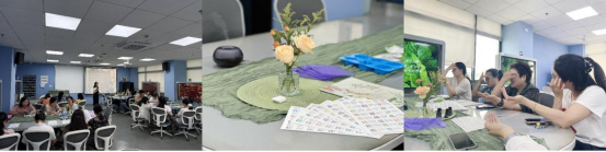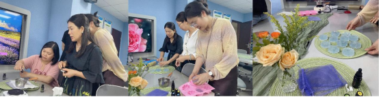 活动现场化身微型“香氛实验室”,在专业调香师指导下,教师们化身“香气工程师”,通过触摸、嗅吸、冥想感受大自然的魅力。在体验薄荷精油时,大家不约而同表示简直是“清醒香”,“有需要时可以闻一闻,肯定比咖啡更提神!” 现场笑语伴着精油芬芳流淌,手指沾染的野菊香、薄荷香,取代了直面电脑屏幕的干燥气息,成为教师们讲台之外匠心修行的第一个印记。