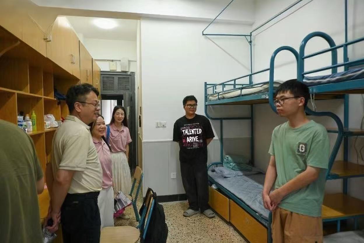 9月13日下午,学院党委书记刘哲纬、党委副书记方惠玲及学院辅导员深入学生宿舍走访慰问新生,他们带着关怀与期望,与新生亲切交流。“来学校的路上顺利吗?”“满意学校的新环境吗?”“生活必需品准备的怎么样?”“对接下来的课程有了解吗?有没有自己感兴趣的方向?”等一句句亲切的问候,迅速拉近了师生间的距离。同时,老师们对新生即将迎来的大学生活和专业学习给予了指引,鼓励同学们合理规划大学学习及职业生涯,努力实现自己的奋斗目标。此外,老师们还特别强调了校园及宿舍安全的重要性,提醒学生注意用电安全、消防等宿舍安全以及防范金融诈骗。同学们也分享了自己初入大学之后的所见、所闻、所感,以及对于未来学习生活的畅想与期待。