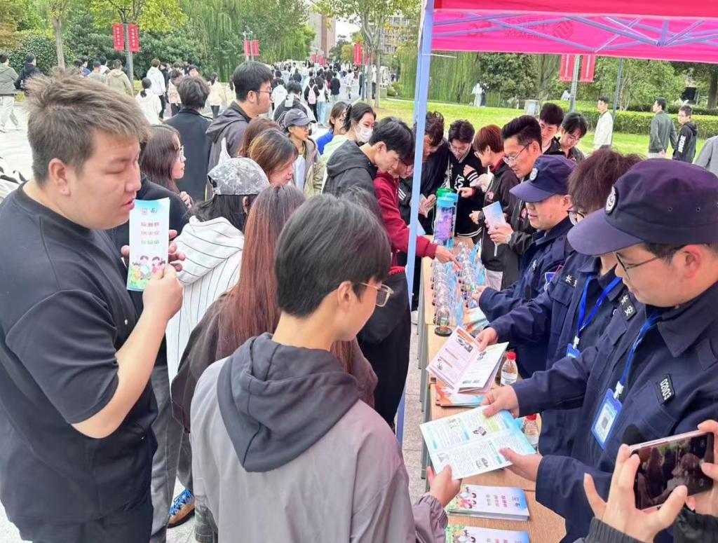 活动现场同步开展禁毒、反诈等安全宣传,打造“全方位安全防护”学习场景。长安镇社会治理办设宣传展台,通过仿真毒品模型,详解传统毒品及伪装成零食饮料的新型毒品的种类与特征,结合案例剖析危害、示范识别方法,倡导师生自我保护、远离毒品。长安派出所民警则聚焦“校园贷”“刷单返利” 等校园高发诈骗,拆解作案套路、讲解 “三不” 反诈原则,发放反诈宣传折页,切实筑牢校园反诈防线。