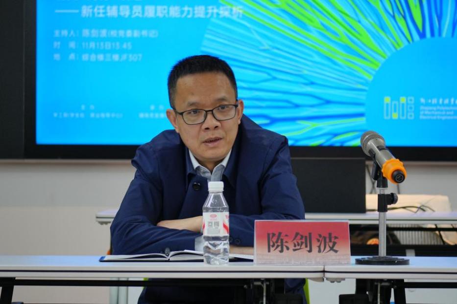 陈剑波寄语新任辅导员,要铸“引领”之魂,做学生思想的引路者;修“仁爱”之心,当学生成长的守护人;练“专业”之能,成为职业发展的践行者;持“笃行”之志,在深入学生中锤炼真本领;守“创新”之锐,把育人道理转化为生动故事,努力成为学生喜爱、学校信赖的优秀辅导员,为培养担当民族复兴大任的时代新人贡献智慧与力量。