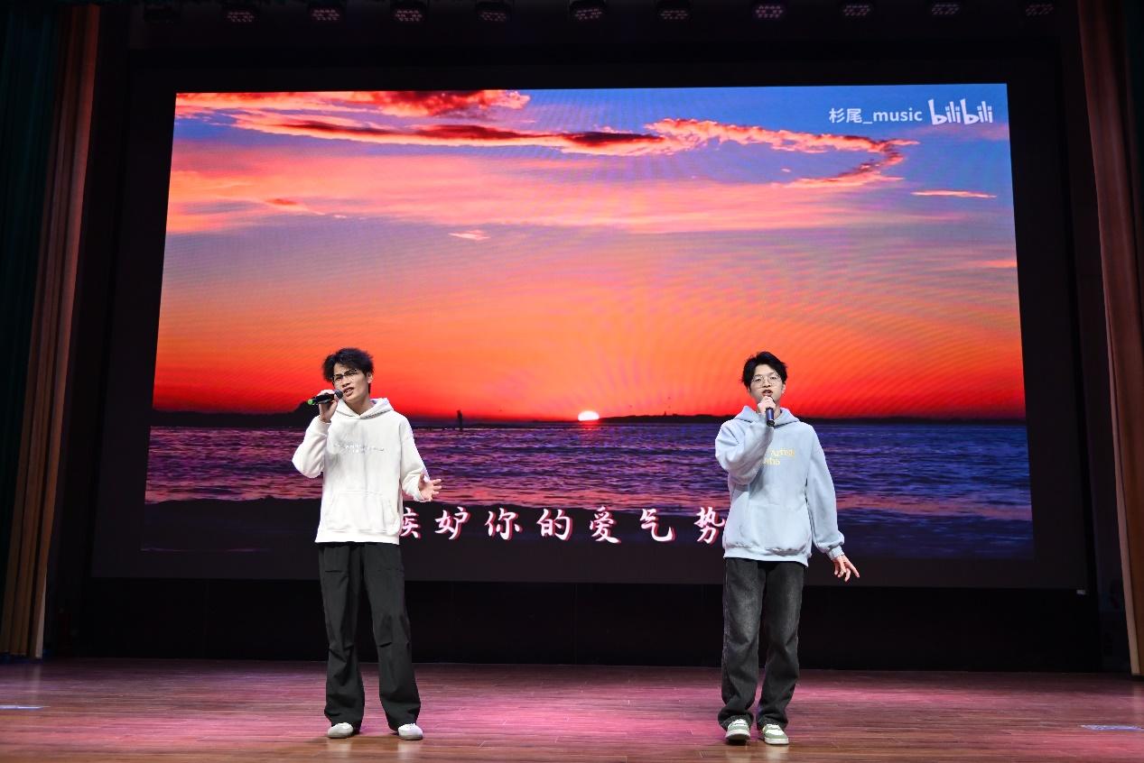 姚嘉怡、徐畅然带来今年音乐综艺的大热歌曲《珠玉》。纯净的声线搭配细腻的演绎,将藏于日常琐碎中的温暖微光娓娓道来,尽显优秀的音乐理解与表达能力。压轴亮点环节,2024年校十佳歌手冠军陈煜彬与2025年校十佳歌手亚军徐韩金强强联合,深情演绎《看着我的眼睛说》。两届冠亚军的实力碰撞,让歌曲中真挚而坚定的情感得以极致释放,成为整场演出中令人难忘的实力高光时刻。