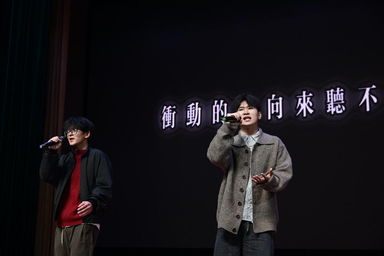 陈茜妮与蓝叶颖以柔美和谐的和声演绎《房间》,用歌声诉说时光里关于陪伴的温柔告白,营造出治愈而温馨的舞台氛围。徐振勋、江子轩与王俊祥、董嘉乐四人通过丰富编排呈现《瞬》,捕捉生命中那些被定格的温暖瞬间。赵鑫康、陈威杰与朱文杰共同演绎《爱你没差》,耳熟能详的旋律响起,迅速引发全场观众自发跟唱,现场化作一片温暖的合唱海洋,情感在歌声中热烈共鸣。