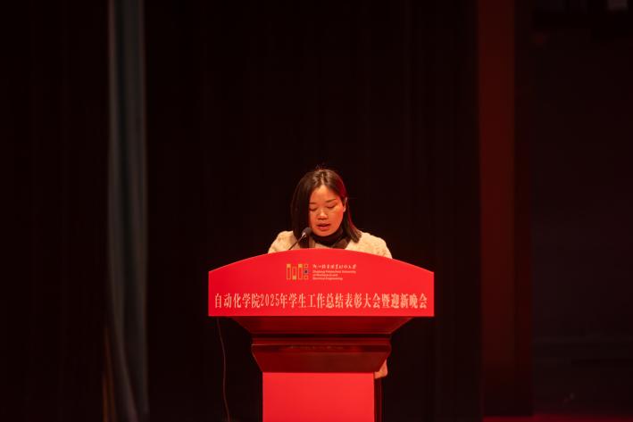 大会伊始,方惠玲围绕2025年度学生工作作总结发言。她指出,过去一年,学院学生工作紧密围绕立德树人根本任务,深化“三全育人”体系,全力塑造“弄潮匠”育人品牌。以党建引领筑牢思想根基,以学风建设和安全管理夯实成长基础,成功构建“一站式”学生社区等育人新阵地。学生竞赛成绩取得历史性突破,年度就业率保持高位,生源质量持续领跑。学工队伍专业能力与协同效能显著提升,资助育人体系精准覆盖,文体活动与学生全面发展深度融合。未来,学院将继续聚焦人才培养核心使命,锐意创新,为学校发展与强国建设贡献自动化力量。