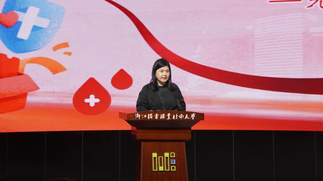 活动在温情的无偿献血公益宣传片中启幕,与会师生有序入场落座。校团委副书记姚婷登台致辞,代表学校向浙江省血液中心专家团队的莅临致以诚挚欢迎与衷心感谢。她强调,无偿献血是青年践行社会责任的重要途径,勉励广大青年以实际行动传递爱心,彰显新时代高校学子的精神风貌。