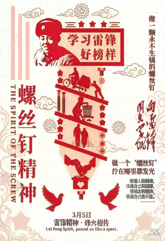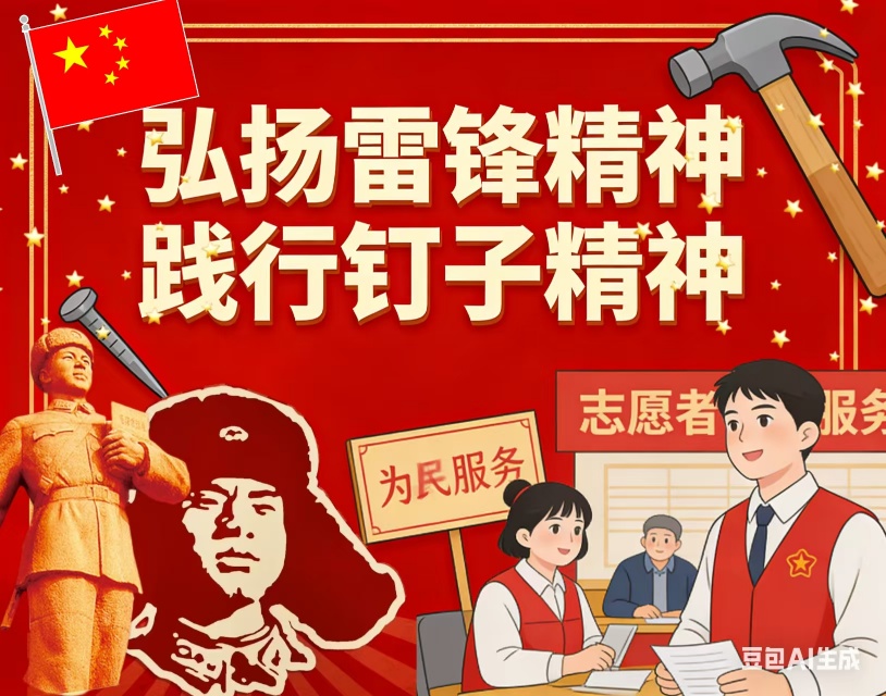 三月中旬,我院结合“奉献、友爱、互助、进步”的志愿精神与人工智能学院的专业,举办AI海报活动。用AI描绘雷锋形象、AI技术赋能志愿服务、科技向善与雷锋精神、我眼中的新时代雷锋等。本次比赛鼓励学生运用AI技术手段,创作具有时代气息的雷锋主题海报,让传统精神在数字时代焕发新的光彩。