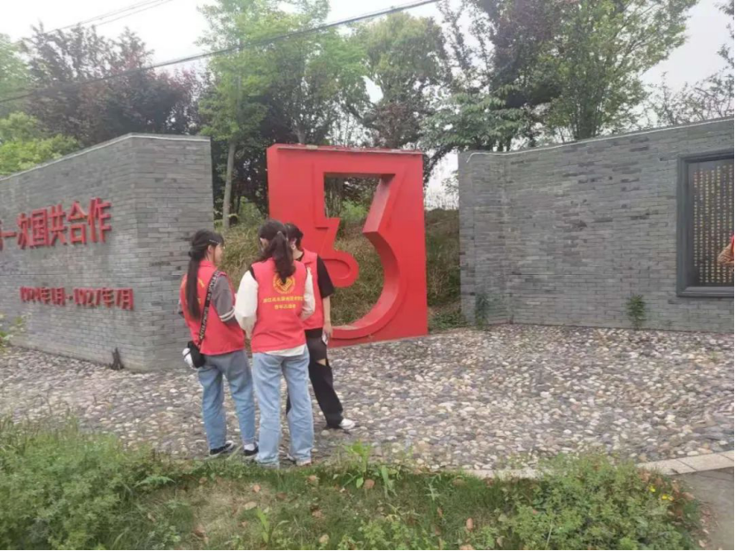 一面面墙壁上,刻着百年来党的艰苦发展,同学们一路走来,也深刻体悟到了党的精神,自发的清理路途中的垃圾,拂一拂衣袖,带走尘杂,留下最纯粹的红色气息。