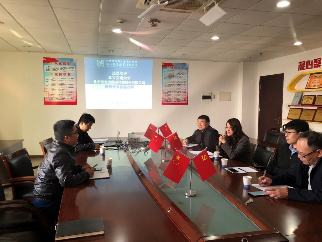 边浩毅院长向北交大领导一行详细介绍了学校和智慧交通学院的概况,重点介绍了分院在实训基地建设、专业建设、人才培养、校企合作、科技创新以及社会服务等领域取得的相关成果;王欣副处长全面介绍了北京交通大学智慧交通相关专业发展水平、专业优势、创新成果以及技术转移中心的相关情况,并希望两校在专业建设、技术创新、成果转化、关键技术协同攻关等方面进一步加强合作。接下来,双方就拟联合开展的科技创新项目进行了深入地探讨并达成了初步合作意向。