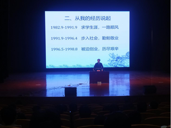 章亭洲博士和同学们分享了自己的人生经历,引出“人为什么需要梦想?”、“如何才能实现梦想?”并指出成就梦想需要具备四要素:第一,提高自身修养,学会忠诚、善良、感恩、宽恕;第二,确立目标;第三,培养乐观精神;第四,培养主动精神。章博士在讲座中讲解了很多真实、生动的案例,让同学们明白:以创业心态做事,则无不成,以创业心态就业,则处处受欢迎;提倡创业心态,并不等于提倡立即创业,创业成功需要很多因素的结合;要想成为一个有用的人,辛苦是必然的,不要试图寻找捷径。讲座引起同学们的共鸣,小剧场掌声阵阵。