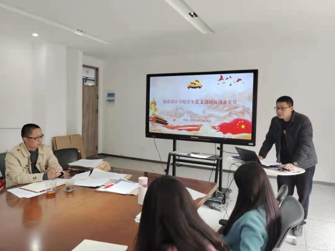 创意设计学院学生党支部于3月24日下午13:00在8-309召开接收预备党员会议。本次会议由学生党支部书记章国赞老师主持,全体党员以及学生发展对象参加。