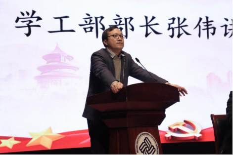 学工部部长张伟做总结发言。张部长对此次受表彰的先进个人和集体表示祝贺,并从疫情显担当、双高显实力、榜样显先锋、创业显梦想、锻炼显发展、平安显文明6个方面充分肯定了2020年度长安校区学生工作所取得的成绩,同时鼓励同学们要不忘初心、牢记使命、融入集体、全面发展,在机电的广阔天地有一番作为。最后,大会以张部长给同学们的六字寄语“平安、健康、快乐”画上圆满的句号。