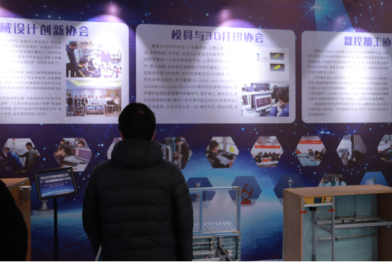 与此同时,智能制造学院还选派老牌社团机械设计创新协会参加专业社团论坛暨特色社团建设总结汇报会,社团成员结合全国大学生机械创新设计大赛经历并以“机械创新设计来源于人文生活”为主题作现场演讲,并就社团组织与管理、历年成果与展示以及未来愿景与展望向与会老师、同学作了汇报。在技能节作品展中,智能制造学院以三大专业社团为依托,展示了同学们在专业竞赛及日常课堂中的优秀作品。包括全国大学生机械创新设计大赛一等奖作品2项,浙江省大学生机械设计竞赛获奖作品8项以及中德班、五轴班等同学们的优秀实训作品,同学们的优秀作品不仅受到了广大师生的一致好评,也充分展示了智能制造学院学生脚踏实地的工匠精神与仰望星空的创造精神。
