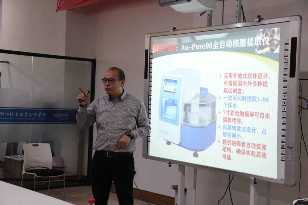 骆老师从个人经验谈起,讲述了磨床的应用行业和加工对象,常用磨床机型以及他对4米级非球面光学元件加工设备技术的研究经历。他向同学们介绍了他所获得的多项奖项,并分享了个人获奖心得,他指出:困难来了,难题来了,就是机会来了,我们要放好心态,积极向上,用心做事,放低姿态,虚心请教,因为机会是留给有准备的人。继而,骆老师介绍了前不久的一个项目——核酸提取仪。骆老师得出成功背后的代价就是关注细节。他给同学们分享了7个忠告: (1)放低姿态,用心做事,一切皆有可能;(2)多参加各类竞赛,锻炼技能;(3)关注细节;(4)参观相关展览,培养兴趣;(5)选择自己感兴趣的工作,是一种享受;(6)团队协作、人际沟通十分重要;(7)奋斗的年纪,千万不要选择安逸。
