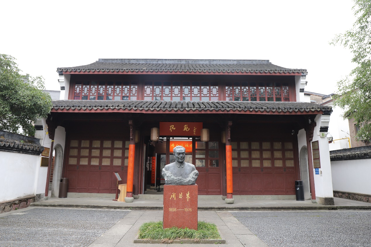 浙江是周恩来总理的祖籍,他生前曾30多次来到浙江,留下了许多闪光的足迹。从1957年至1963年,周总理将梅家坞作为他在农村工作的联系点和对外交流宣传的开放单位,先后五次陪同外宾或专程来到梅家坞视察和调查研究,踏遍茶山路,走访社员家,与干部做规划,同群众谈话采茶。梅家坞的建设发展凝聚着周总理的心血。为了纪念周总理为梅家坞的建设和发展做出的贡献,1991年,梅家坞村民自发筹建起了周总理纪念室,多年以来,这里已经成为杭州人民缅怀伟人,感悟周总理人格魅力的最佳场所。
