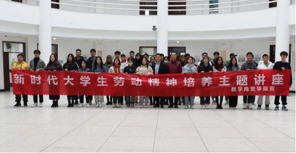 为提高大学生的劳动意识,培养新时代大学生的劳动精神,12月2日下午,数字商贸学院在长安校区开展了以“认识小我、完善自我、实现大我”为主题的的劳动教育主题讲座。讲座有幸邀请到我院2004届优秀校友、现担任杭州市西湖区西溪街道党工委副书记、办事处主任的何立剑担任主讲人,数字商贸学院党总支副书记符强、辅导员刘琦以及学生代表100余人参与讲座。