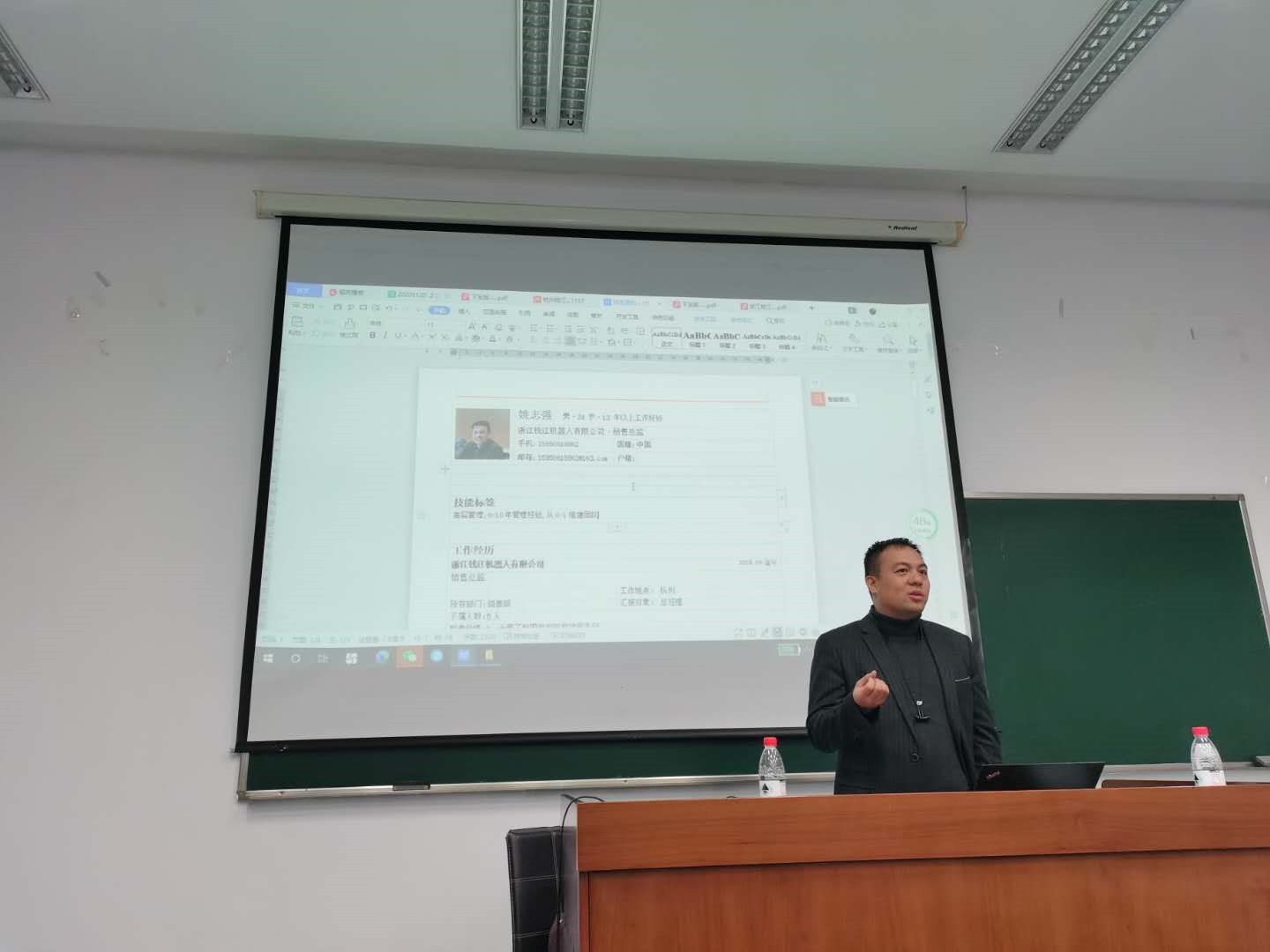 随后,她用自身经历向同学们展示了创业的艰难。创业不仅需要自身做足准备,更需要天时地利人和。她以自己过去五年非标自动化营销策略经验和未来五年机器视觉营销策略的规划为框架,为同学们介绍了她在机器人行业的成长轨迹。