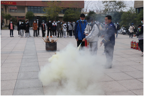 随后,开展了使用消防器材补救初期火灾的实操演练。毛队长对在场的师生员工进行了实地灭火技能培训,指导如何在火灾发生时能做到不慌张、如何正确使用消防器材对早期火情进行处理。在仔细听取了毛队长的讲解和示范后,大家积极进行实操演练,基本掌握了消防器材的使用方法。