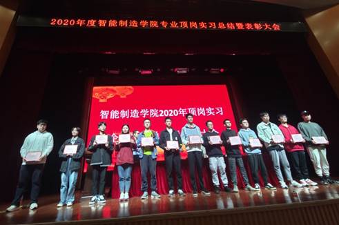 2020年10月21日晚上,智能制造学院在5号楼报告厅隆重召开2020年度顶岗实习企业实践总结暨表彰大会。会议由产学办主任陈先进主持,分院院长杜红文、副院长蒋立正、专业教师宣佳敏、2018级、2019级学生代表出席会议。