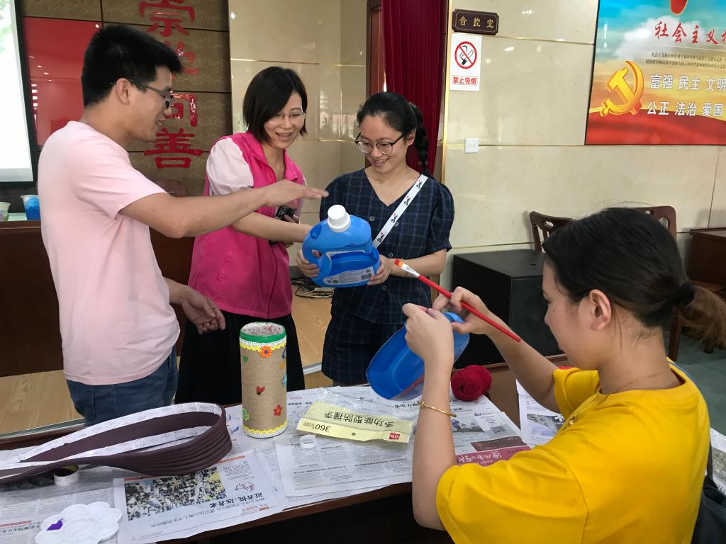 随后,实践队积极响应国家垃圾分类的号召,倡导废物再利用与环保精神,积极配合新民村推进美丽乡村以及 “优美庭院”创建工作,充分展现“清新、质朴、自然”的农村风貌。与新民村村委联合举行“变废为宝 花盆制作——振兴乡村你我同行,筑梦新民美丽庭院”花盆制作活动。