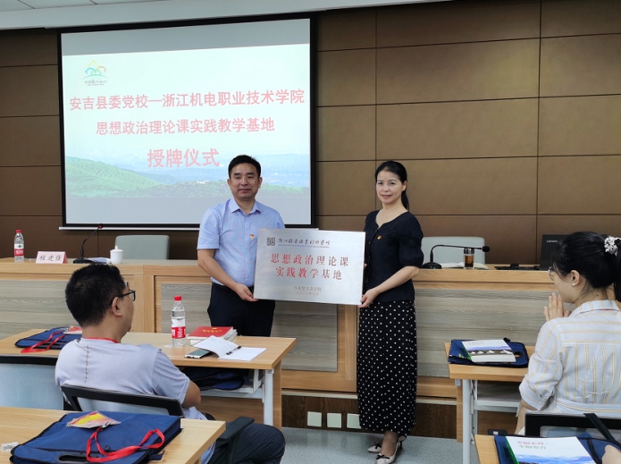 8月22日下午,实践研修班在安吉县委党校(“两山”讲习所)正式拉开帷幕。安吉县委党校副校长王秀华、马克思主义学院院长查广云以及培训班班主任黄翔和全体思政课教师出席活动。开班式上安吉县委党校王秀华副校长致欢迎辞,查广云教授做了实践研修培训动员。举行了学校马克思主义学院与安吉县委党校共建思想政治教育实践教学基地的授牌仪式。