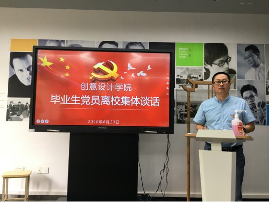 在活动中,创意设计学院党总支书记张荣路老师首先针对2020届毕业生党员文明离校集体谈话。张书记在谈话中表示,2020届9名毕业生党员代表着毕业生的先进分子,在文明离校过程中要做到文明有序起表率,同时协助分院组织好毕业生文明离校的各项工作,做好分院、毕业生之间的桥梁和纽带。在踏上社会以后,也要充分牢记自己的党员身份,认真学习习近平总书记系列讲话精神,注重思想道德修养,使自己具有正确的政治方向,具有高尚的道德品质,具有优秀的人格形象。在日常生活过程中必须以社会主义核心价值体系为指导,在实践中不断感知和领悟,尤其要注意坚持知行统一。希望毕业生党员坚定理想信念,练就过硬本领,勇于创新创造,矢志艰苦奋斗,锤炼高尚品格,在实现中国梦的生动实践中放飞青春梦想,在为人民利益的不懈奋斗中书写人生华章。
