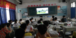 图为分水中学学生观看我院招生宣传视频和我院微信公众号宣传推文