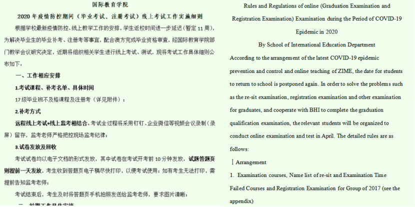 制定《国际教育学院线上考试工作实施细则》
