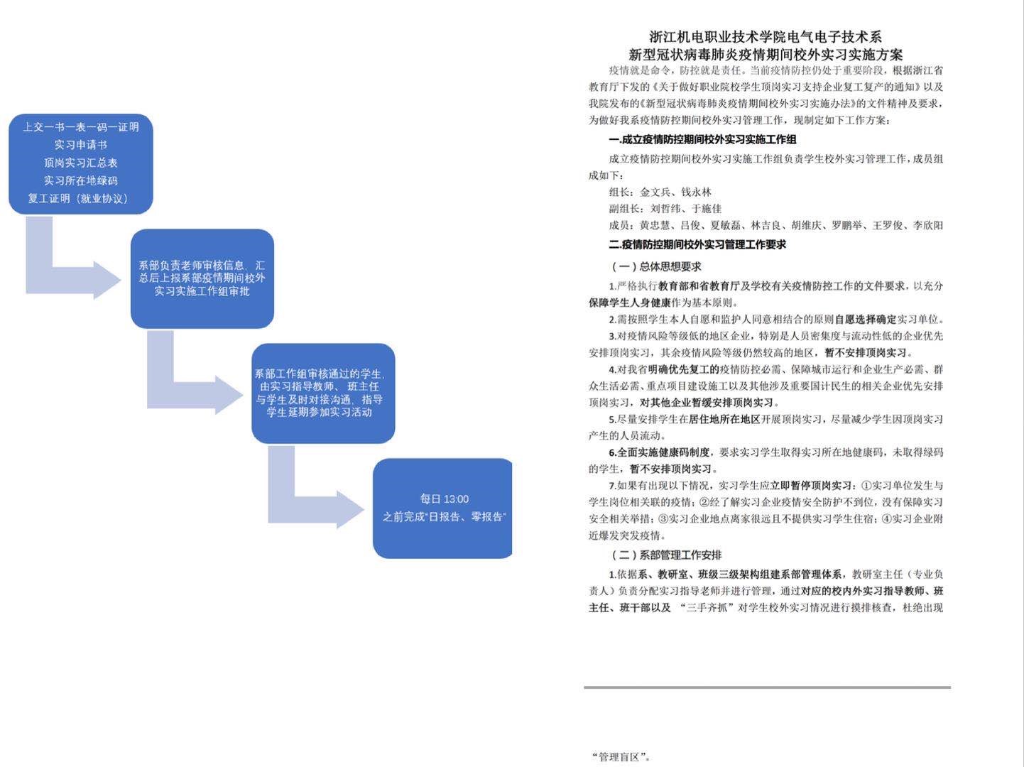 疫情就是命令,防控就是责任。当前疫情防控仍处于重要阶段,根据浙江省教育厅下发的《关于做好职业院校学生顶岗实习支持企业复工复产的通知》以及浙江机电职业技术学院发布的《新型冠状病毒肺炎疫情期间校外实习实施办法》的文件精神及要求,电气电子技术系积极组织动员学生志愿参加社会实践,支持企业复工复产。