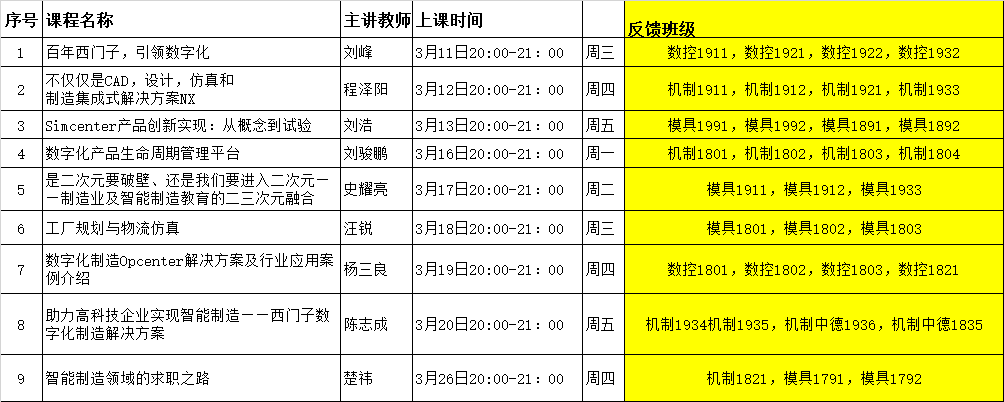 了解到学生的需求和想法之后,机械技术系及时和西门子工业软件公司教育主管部门的负责人取得联系,沟通直播课程教学内容,前沿技术方向,深入了解后,西门子公司随即组织数字化工业软件资深专家和具有丰富项目经验的工程师开设“西家大咖带你学智造”线上系列直播课程。系里及时组织学生观看学习。