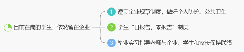 为保障学生安全,机械技术系以“日报告、零报告”制度为核心,制定疫情防控期间学生在外实习时的多方联动防控机制。形成毕业实习指导老师、班主任、家长、企业指导老师和学生之间的多方联动关系,充分运用信息技术手段,全面掌握并每日汇报学生实习的地点、时间安排、工作生活环境、疫情防护措施等具体情况,多方指导并督促企业和学生做好疫情安全防护措施,保证学生身体健康。