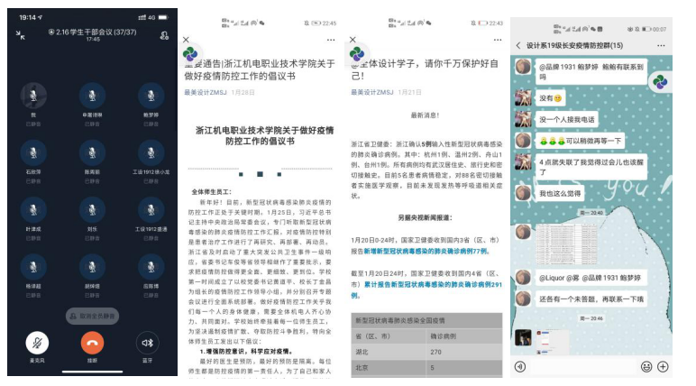 三、发扬人文关怀,传递暖心温情。她实时关注学生思想动态,及时做好了心理疏导,帮助学生树立坚决打赢疫情防控阻击战的信心和勇气。主动倾听学生诉求,对学生近期普遍咨询的开学返校时间、车票退订、实习实践等问题,要按照学校的统一要求及时答疑解惑和服务指导,把学校的关爱之心和牵挂之情传递给每位设计学子。叮嘱每个学生戴口罩,勤洗手,不造谣、不传谣、不信谣,服从安排,不提前返校;每天在线打卡报平安;对有鼻塞、流鼻涕、咳嗽等轻微感冒症状的同学,及时电话、微信沟通,了解症状;突如其来的疫情给很多学生带来了惶恐、焦虑、不安的负面情绪,做好慰问和心理辅导工作,避免引起恐慌……这就是她每天抗疫的“打卡”模式。隔离不隔心,休假不休息,用细心、耐心和爱心与学生们共同抗“疫”。