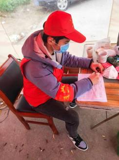 在防疫期间,有记者询问:“你为什么会想来?”他毫不犹豫地说:“抗击疫情是每一个人的责任,现在正是需要我的时候,我也希望能够为社会贡献一份微薄的力量。”组织分配的任务是记录社区卡点过往车辆和人员,测量体度并登记信息等。“这一系列的流程虽繁琐复杂,但能实实在在地排除内在隐患。所以作为这个岗位上的一员,我有这个责任和信心将这一份工作完成好!”他坚定地说。元宵节时,帐篷外盏盏孔明灯升起,他与其他志愿者一起值班。因为有社区人们的温暖关怀,他们一点也不觉得辛苦。有人称他们是“英雄”,应该是最正确的称呼了。