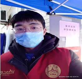 材型1801班虞泽明同学在慈溪市附海镇海中路段给进入的居民测量体温,询问、登记外地人口,守护着身后的每家每户,他说感觉很累但是收获很多,虽然很多人都不认识,但是大家都是在一个村里生活的,从早上7.30-晚上18.00看到进来的人都很正常,没有一个温度超过37.3℃,心里还是很开心的,过程中也有不配合我们调查的人,也发生过争执,但是大多数人都是配合我们工作的。也希望各地的疫情能够慢慢好起来吧,就像钟南山院士说的一样,待在家里是最好的办法,希望祖国快点恢复生机。