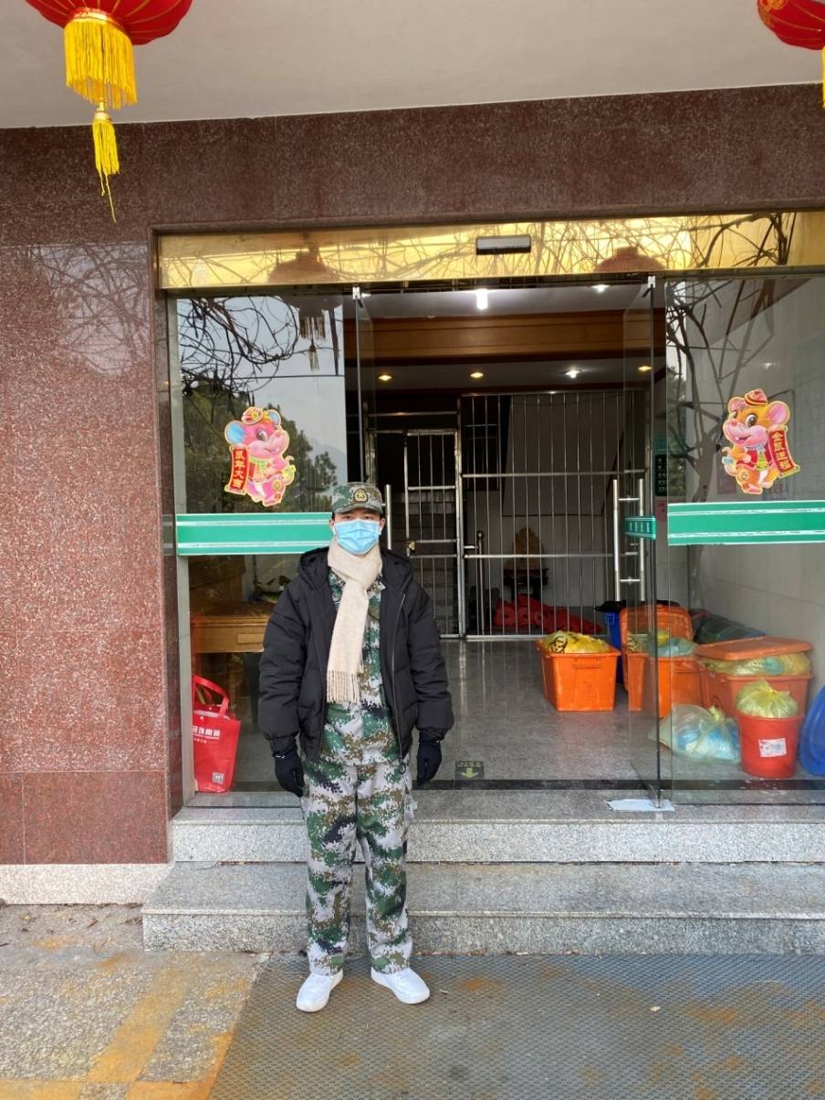 傅李杨是一名退伍士兵,在疫情来临之时敢为人先,积极响应政府的号召。在萧山区靖江镇的卡点,对进入镇内的人员车辆进行检查,测量体温,并对外来人员进行登记。