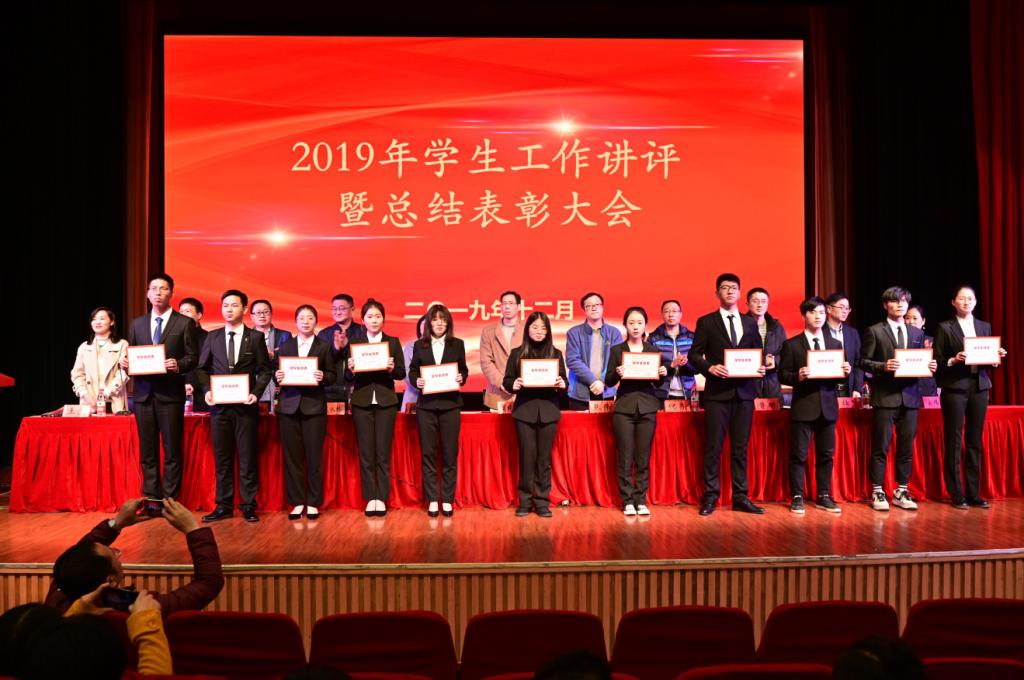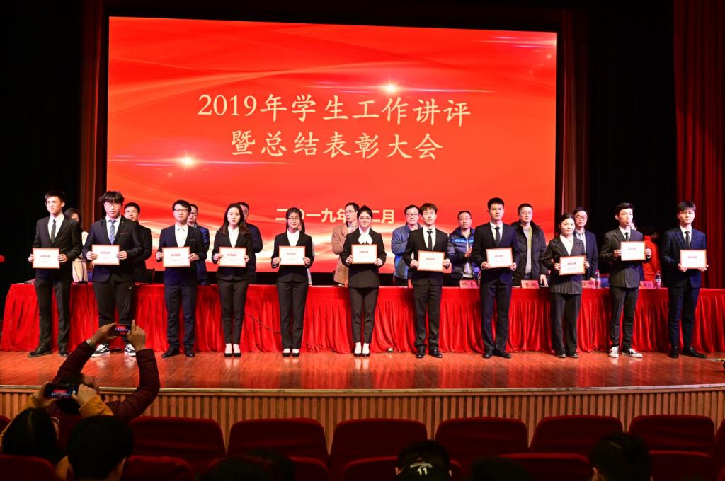 会上表彰了2019年各级各类学生荣誉。由学工部部长张伟宣读了《2019年省级以上先进荣誉名单》,团委书记林洁宣读了《2019年省级以上创新创业类竞赛获奖名单》,各系党总支书记宣读了《2018/2019学年院级优秀学生干部名单》、《2018/2019学年院级学习标兵名单》、《2018/2019学年院级先进班团名单》、《2018/2019学年院级优良学风班名单》、《第二十届科技技能节获奖名单》、《“五星文明寝室”名单》,学工部副部长王汇宣读了《学生劳动典型名单》。本次共有1000余人次获得各级各类奖项。