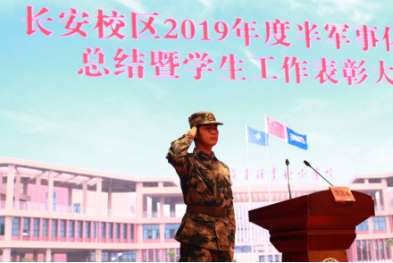 12月23日晚,长安校区2019年度半军事化管理总结暨学生工作表彰大会在长安小剧场举行。学工部部长张伟、副部长方惠玲、长安校区学生处老师、全体辅导员以及各班班委参加了本次会议。
