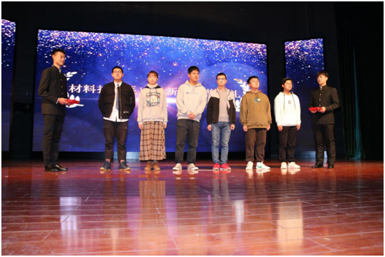 晚会的第一篇章——材料技术系2019级新生颁奖典礼,表彰一学期来的各类先进和荣誉,由邱主任、楼书记和程主任上台为获奖班级和同学颁奖。楼书记随后进行了致辞,“在过去的一个学期里我看到了你们的蓬勃朝气,希望你们在点滴中进步,预祝大家学业进步,坚持创新!”楼书记的一番话鼓舞同学们继续奋发向前。