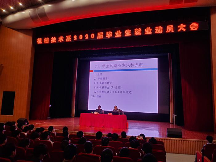 为指导、动员2020届毕业生更好的开展就业规划,把握就业机会,11月13日晚,机械技术系在五号楼报告厅召开2020届毕业生就业动员大会,系党总支副书记诸玉富老师、学工办主任王力翔老师、就业辅导员及部分毕业班班主任和2020届全体毕业生参加了本次会议。会议由王力翔老师主持。